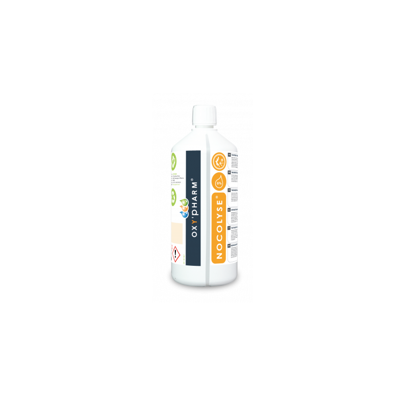 Le Nocolyse est un produit de bio-désinfection des surfaces prêt à l'emploi à base de peroxyde d'hydrogène à 6% et d'argent, qui doit impérativement être utilisé avec les appareils de diffusion Nocospray/Nocomax Easy.