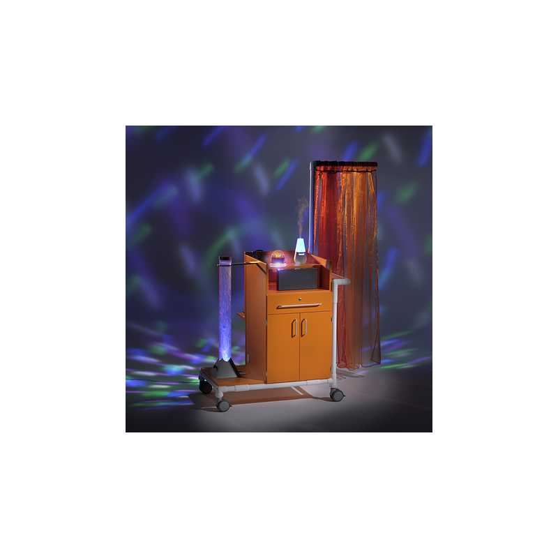 Chariot « snoezelen » avec moyens de stimulation multi sensorielle contrôlée dans différentes endroits