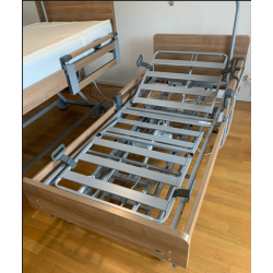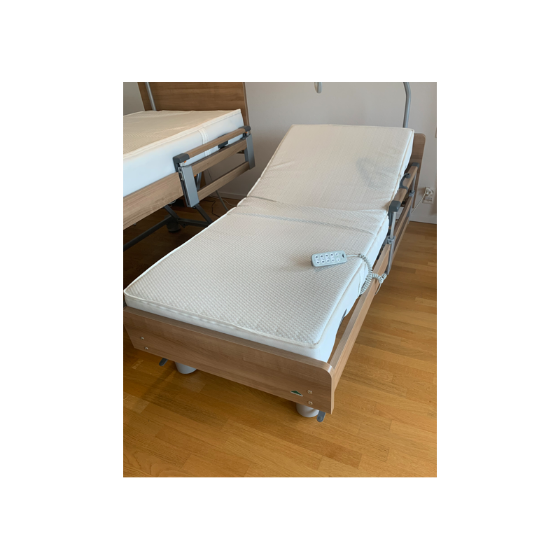 Un lit de soins REGIA de Burmeier avec sommier de 90x200cm Bois Cerisier Havanna, panneaux de tête et pied de lit Nobla, avec matelas CLEAN DREAM 90x200cm.