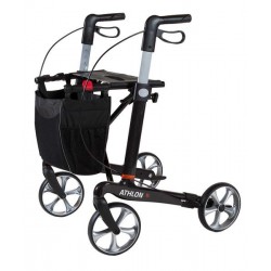 Détails du produit: cadre carbone élégant et fonctionnel | poignées ergonomiques pour les mains et les freins | Frein de stationnement | Poignées réglables en hauteur en continu avec mise à l'échelle en hauteur | Filet de siège | grosses roues | Aide au pas sur les roues arrière | freins sans entretien | facilement pliable | y compris un sac à provisions robuste et amovible et un porte-bâton.